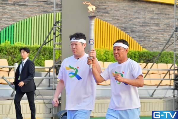 장성의 바둑 유망주 김다빈 선수, 다자녀 가정의 온은신 씨, 불굴의 의지를 상징하는 김미수 조정선수, 고향 발전에 헌신하는 재경·재광 향우회장의 손을 거친 성화는 마침내 최종 주자에게 전달되었습니다.