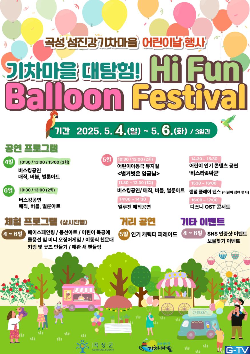 5월 황금연휴, 아이들의 웃음소리가 끊이지 않을 환상적인 풍선 나라! 곡성 섬진강기차마을에서 온 가족이 함께 행복한 어린이날 추억을 만들어보세요!