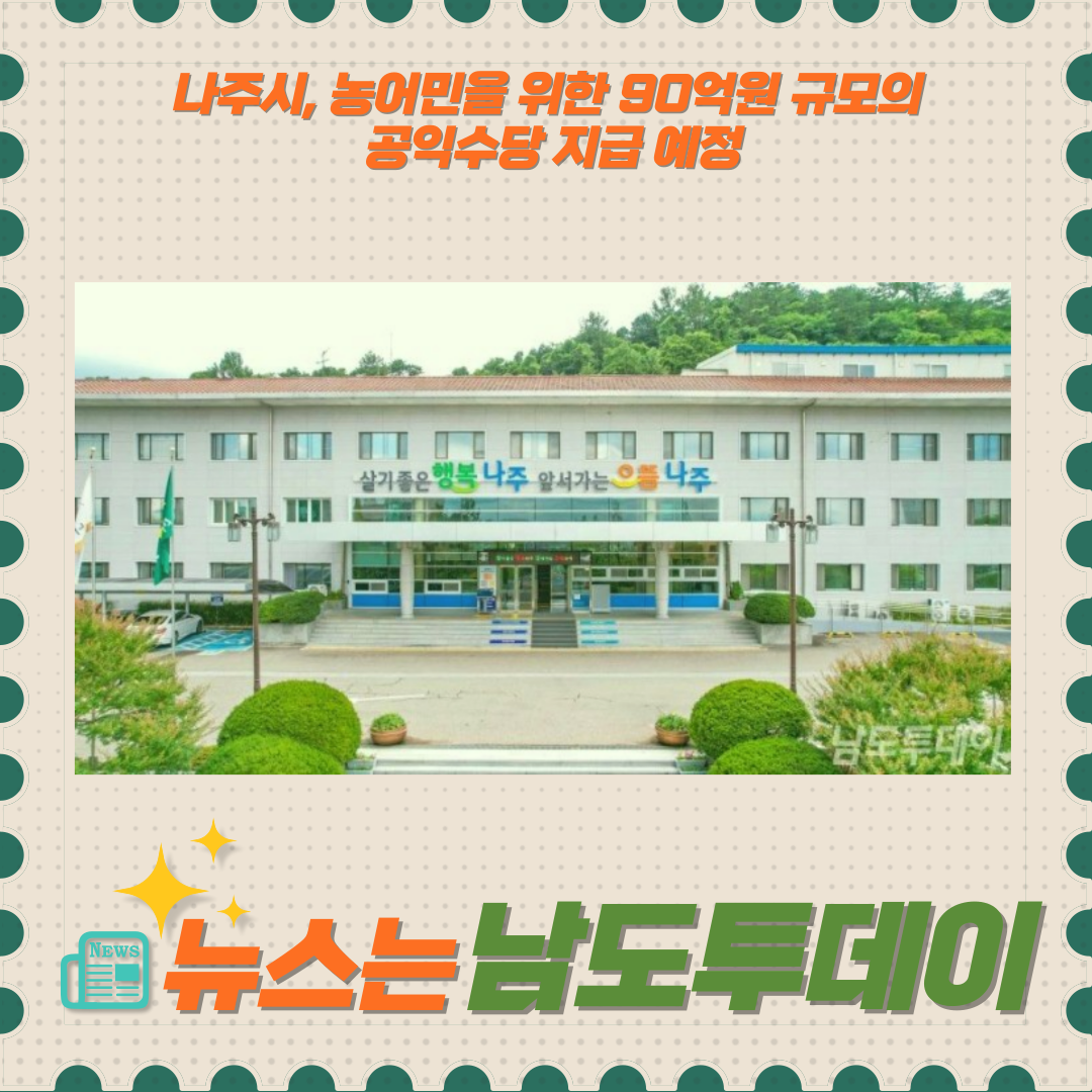 전라남도 나주시가 올해 90억원 규모의 농어민 공익수당을 관내 농어업인에게 지급한다는 소식입니다.