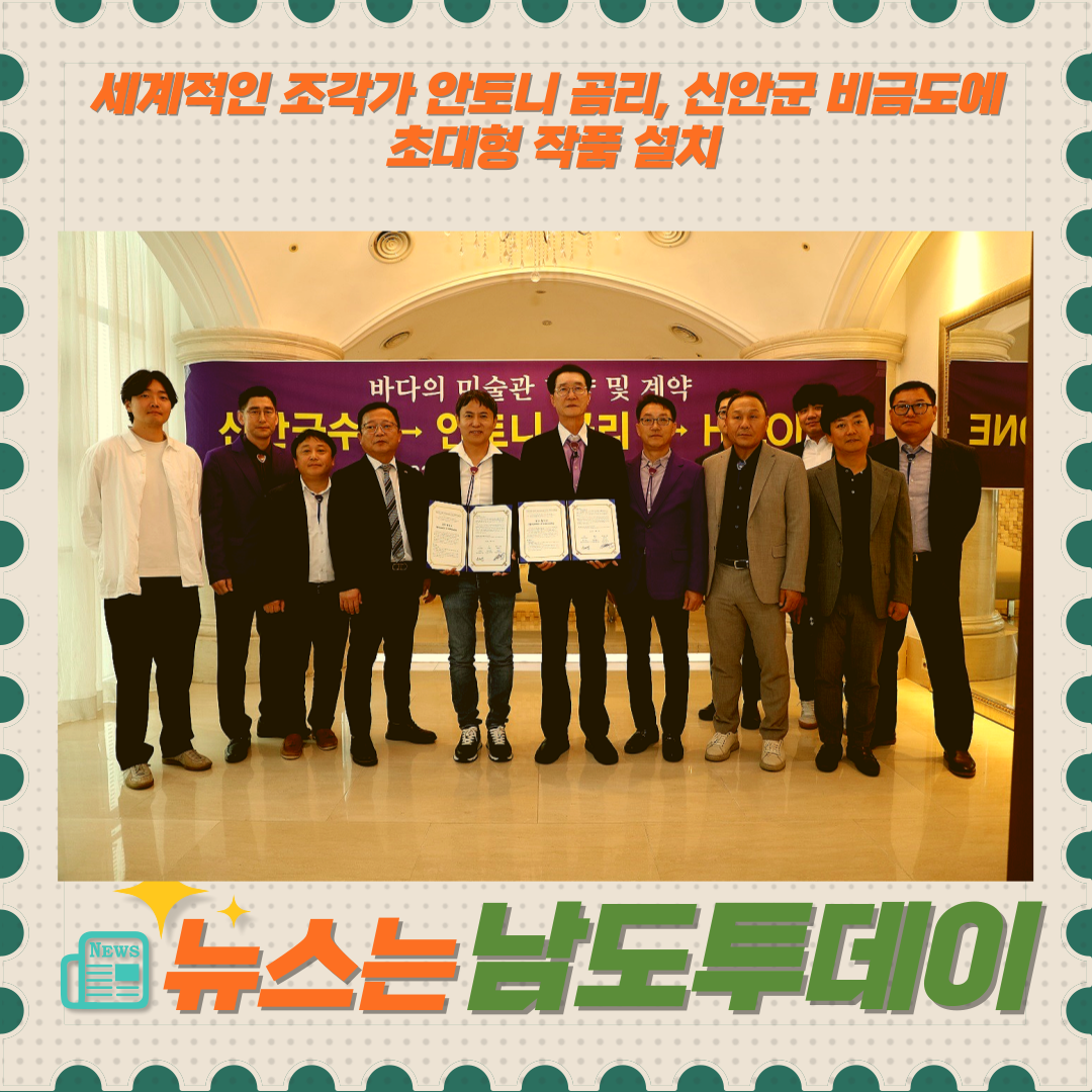 신안군이 예술섬 프로젝트를 추진하며 세계적인 조각가 안토니 곰리를 초청해 비금도에 초대형 작품을 설치한다고 발표했습니다.
