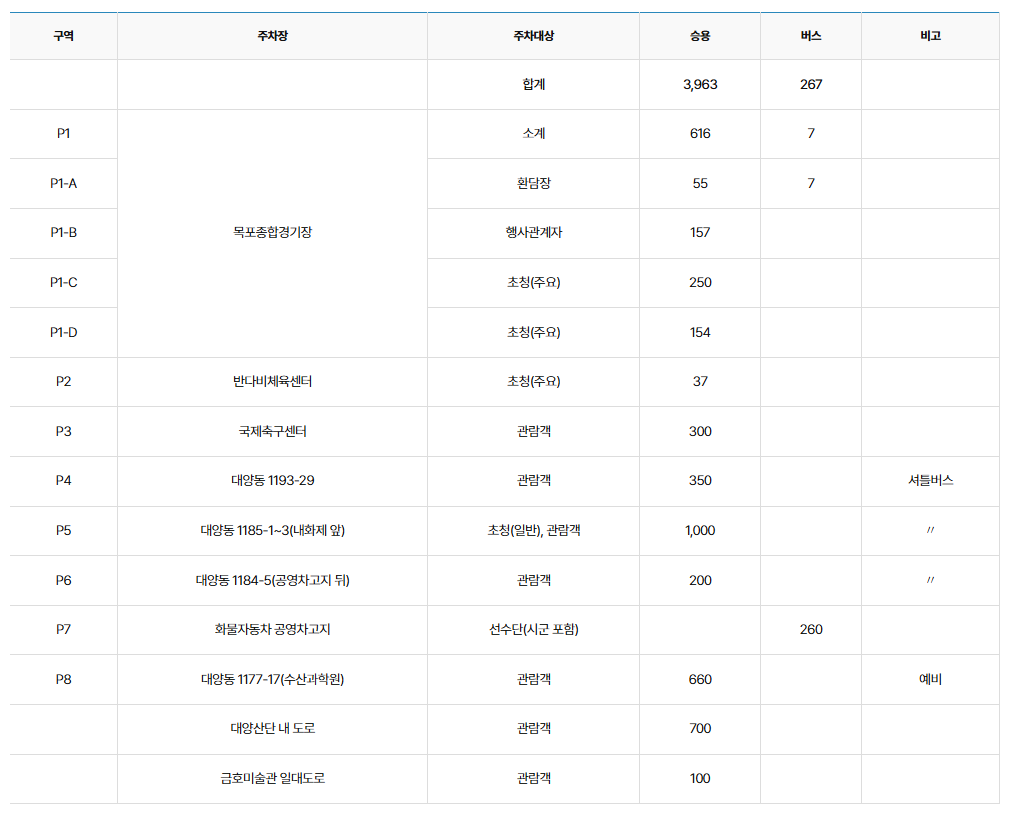 대한민국 생활체육인의 대축제, 2025 전국생활체육대축전 주차장 안내