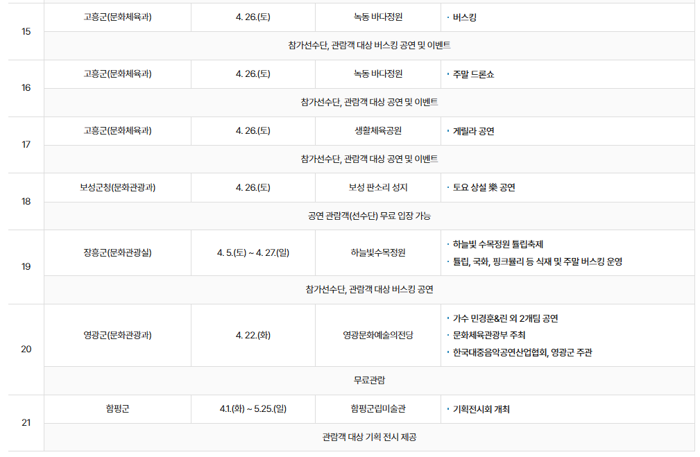 생활체육의 열기와 아름다운 문화 행사가 어우러지는 목포에서 특별한 봄날의 추억을 만들어 가시길 바랍니다. 대축전과 함께하는 문화 행사는 여행의 즐거움을 배가시킬 것입니다.