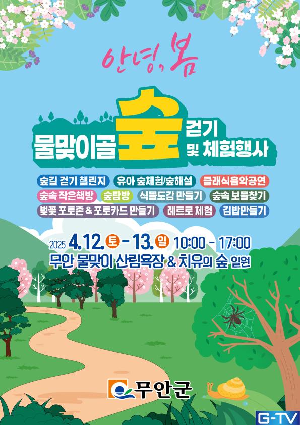 따스한 봄볕 아래 걷기 좋은 계절, 4월 주말에 특별한 나들이를 계획하고 있다면 전남 무안으로 떠나보는 것은 어떨까요 무안군(군수 김산)이 오는 4월 12일 토요일과 13일 일요일 양일간, 오전 10시부터 오후 5시까지 무안의 숨겨진 보석 같은 공간, 물맞이 산림욕장과 치유의 숲 일원에서 온 가족이 함께 즐길 수 있는 ‘ 물맞이골 숲 걷기 및 체험 행사 ’를 개최한다는 반가운 소식입니다