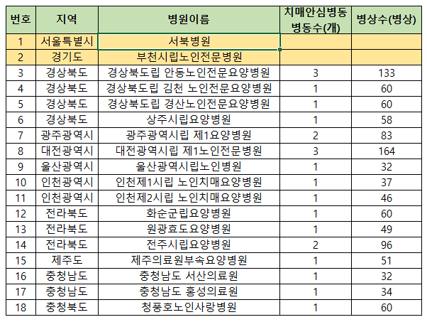이로써 현재 치매안심병원은 총 18개소로 늘어났다.