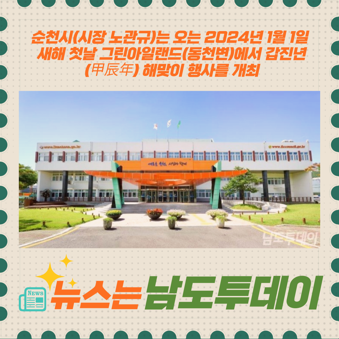 새해 첫날, 순천시에서 빛나는 여명과 함께 시작하는 갑진년 해맞이 행사! 2024년 1월 1일, 순천시는 그린아일랜드에서 해맞이 행사를 개최합니다.