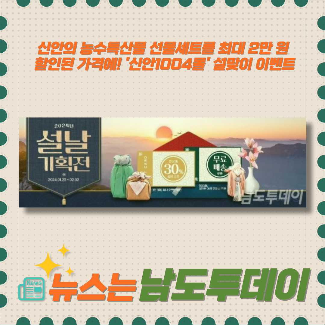 신안군(군수 박우량)이 온라인 쇼핑몰 '신안1004몰'에서 설맞이 할인 기획전을 진행한다고 밝혔습니다.