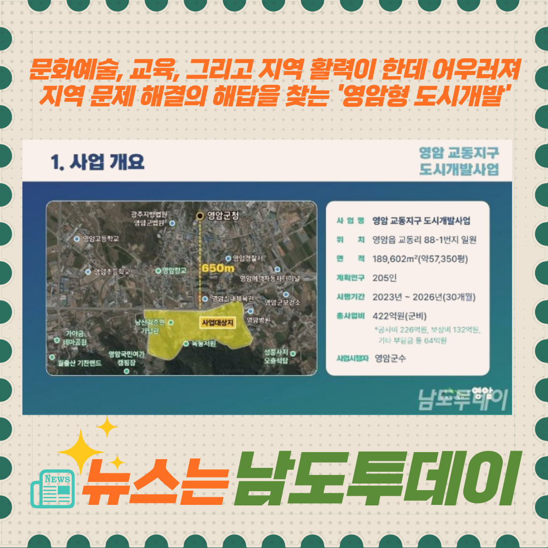 문화예술, 교육, 그리고 지역 활력이 한데 어우러져 지역 문제 해결의 해답을 찾는 '영암형 도시개발'이 첫 발을 내딛었습니다.