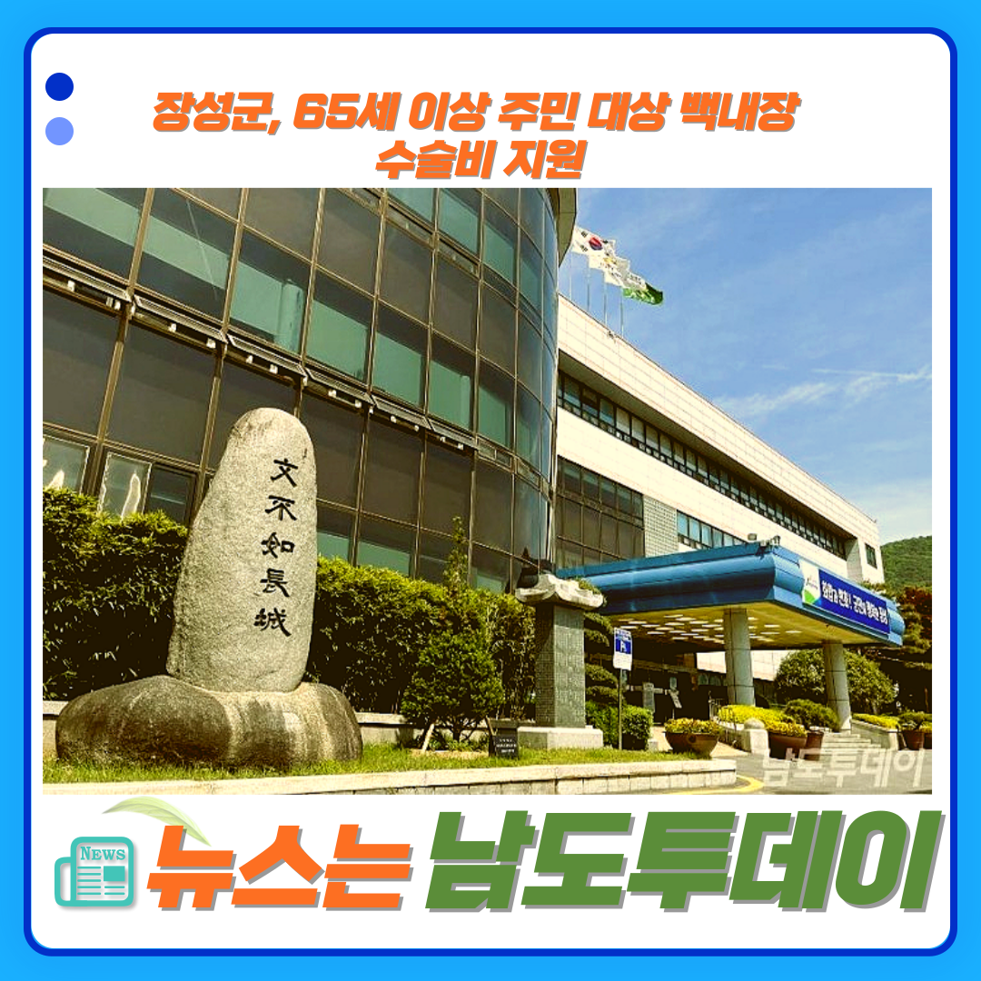 장성군(김한종 장성군수)에서 65세 이상 주민들의 노후 건강을 위해 백내장 수술비를 지원하는 소식이 전해졌습니다.
