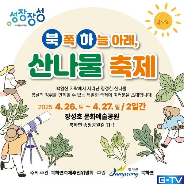 이번 주말, 장성 북하면에서 열리는 산나물 축제에서 향긋한 봄내음과 함께 즐거운 추억 많이 만들어 가시길 바랍니다.